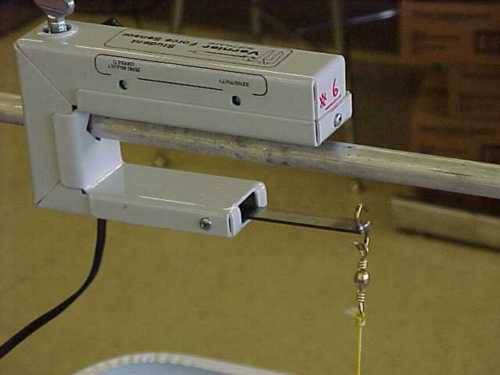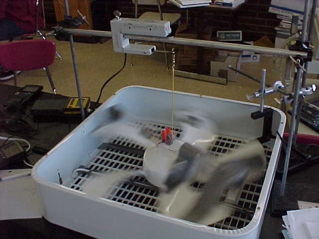 force probe suspended above the fan. A fishing "spinner" is connected in line so that the string